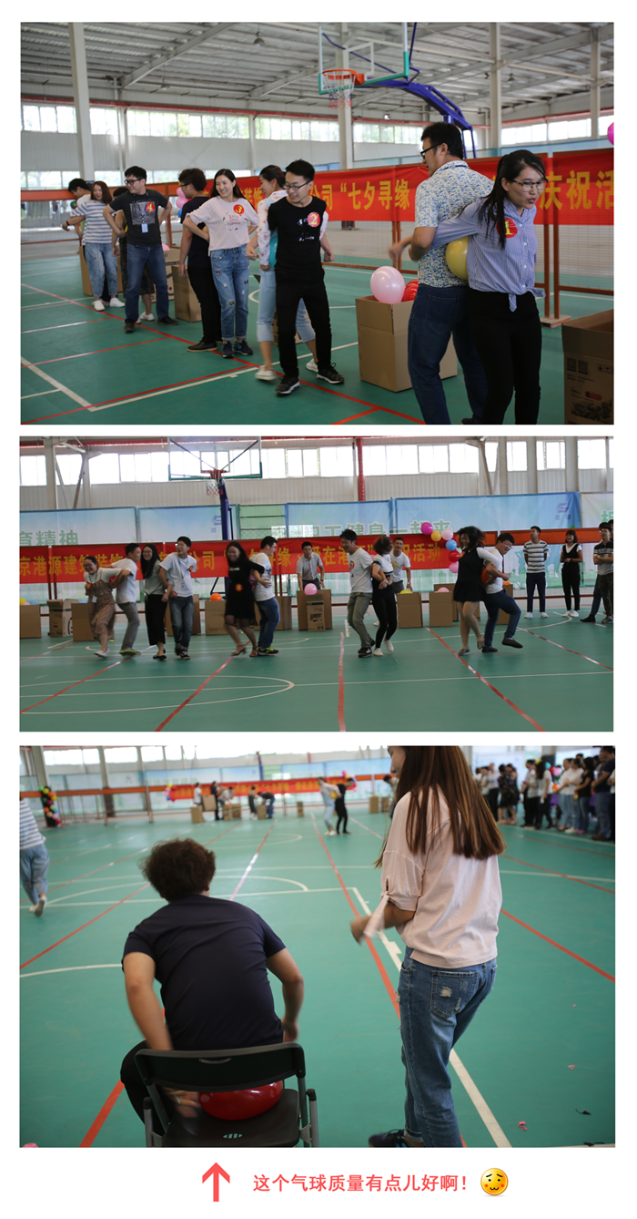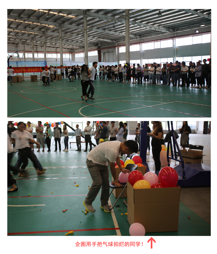 【游戲規(guī)則:男女搭配背靠背夾住氣球,從起點跑至終點并把氣球坐炸,以坐炸氣球的數(shù)量判斷勝負(fù)?!?/span>