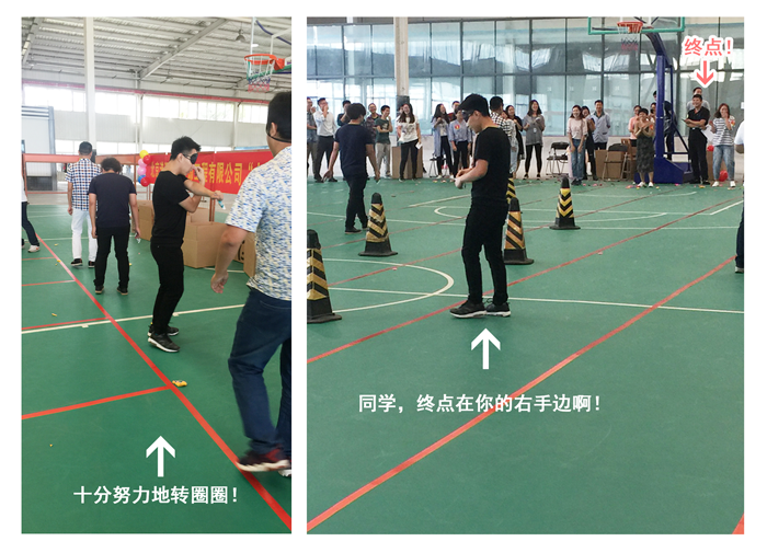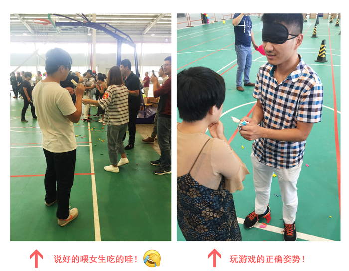 【游戲規(guī)則:男生在起點蒙上雙眼并拿上一根雪糕,原地轉(zhuǎn)五圈后繞過障礙物跑向終點,找到相應(yīng)號碼的女生后喂她把雪糕吃完(注意:是喂女生吃,不是自己吃?。?/strong>,最終以吃完雪糕的順序判斷勝負(fù)!】