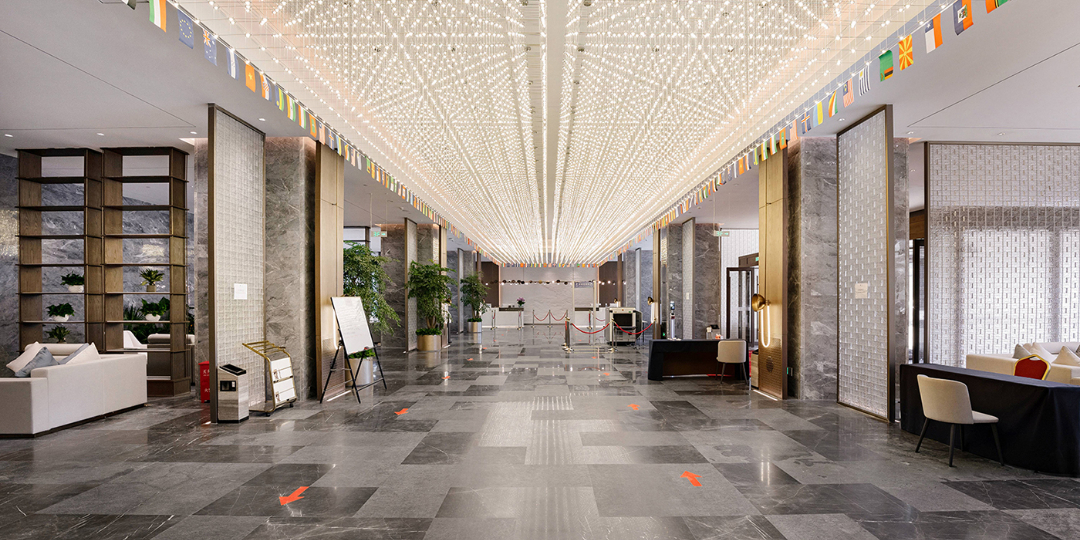 洛陽伊水迎賓館是洛陽市重點(diǎn)項(xiàng)目,由港源裝飾參建的項(xiàng)目一期建筑面積8.8萬平方米,建筑包括具有接待國際會(huì)議標(biāo)準(zhǔn)的五星級(jí)酒店、國際會(huì)議中心、多功能會(huì)議廳、貴賓樓以及配套建筑等。