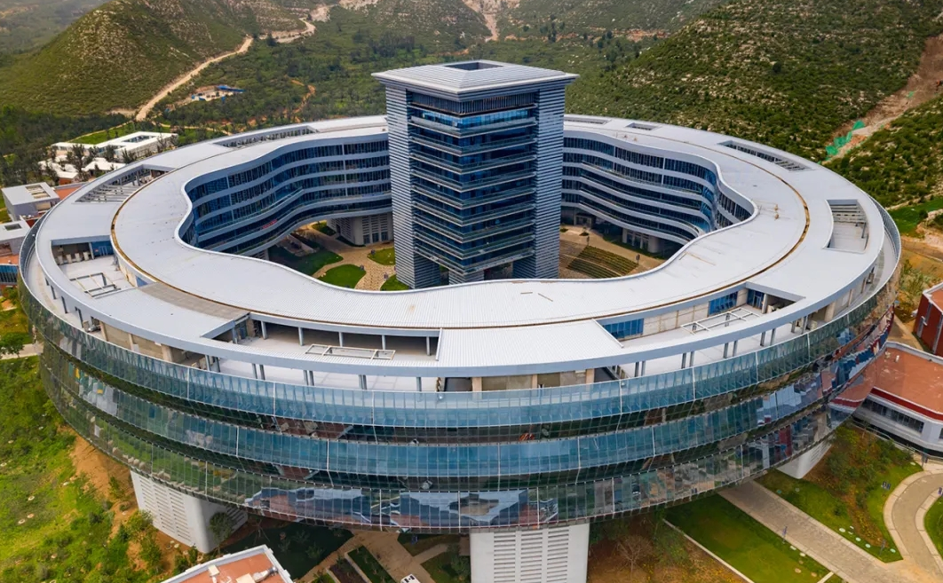 中國電科電子科技園位于河北淶水,是在青山碧水之間建造的大體量科研綜合體,由九大建筑組團(tuán)共同構(gòu)成了這座“桃花源中的科技園區(qū)”。