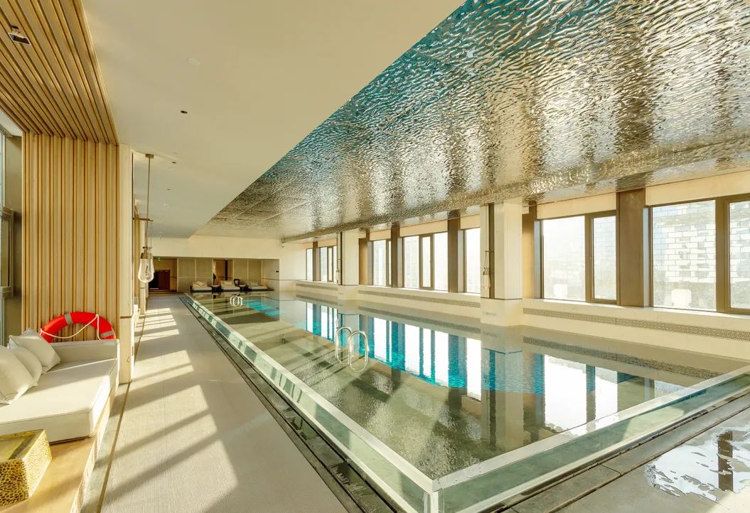 高層泳池位于酒店五樓,在擴(kuò)大使用面積的同時(shí)升級(jí)改造為無邊泳池,屬于酒店施工的重點(diǎn)控制區(qū)域。港源項(xiàng)目團(tuán)隊(duì)在泳池施工過程中嚴(yán)格把關(guān),采用透明材質(zhì)作為護(hù)欄,當(dāng)池水恰好漫過護(hù)欄便呈現(xiàn)出無邊水面效果,完美實(shí)現(xiàn)了設(shè)計(jì)初衷。