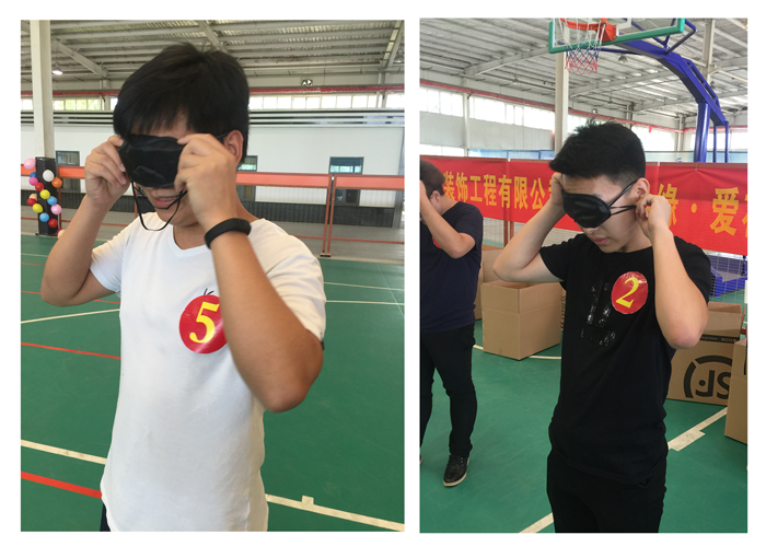 【游戲規(guī)則:男生在起點蒙上雙眼并拿上一根雪糕,原地轉(zhuǎn)五圈后繞過障礙物跑向終點,找到相應(yīng)號碼的女生后喂她把雪糕吃完(注意:是喂女生吃,不是自己吃?。?/strong>,最終以吃完雪糕的順序判斷勝負(fù)!】