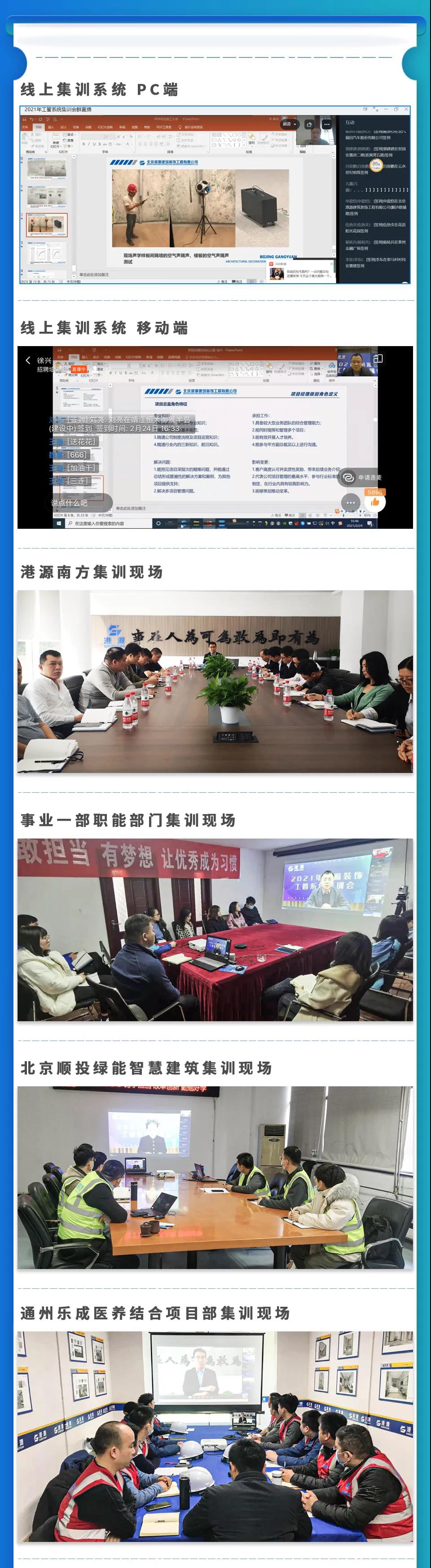牛年伊始,港源裝飾嚴(yán)格遵循國家防疫要求,全國各事業(yè)部、運(yùn)營分公司“就地集結(jié)”,通過開工動員會、規(guī)劃研討會、勞務(wù)培訓(xùn)會等多種形式吹響號角、迎戰(zhàn)全年。此外,公司舉辦了大型線上集訓(xùn)會,聚焦專業(yè)能力培養(yǎng),為員工提供自我提升的優(yōu)質(zhì)平臺。